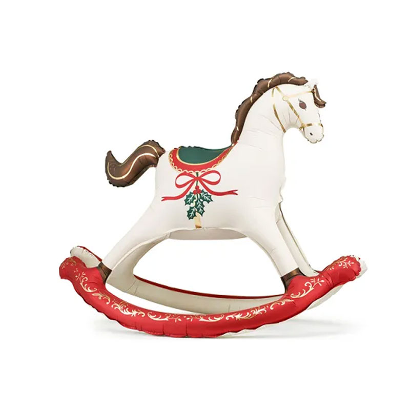 Den lekfulla designen gör ballongen till en fantastisk detalj för julfirandet, oavsett om du vill skapa en mysig hörna hemma eller piffa upp festen med något oväntat och roligt. Gunghästballongen blir snabbt ett samtalsämne och sprider både glädje och julkänsla.