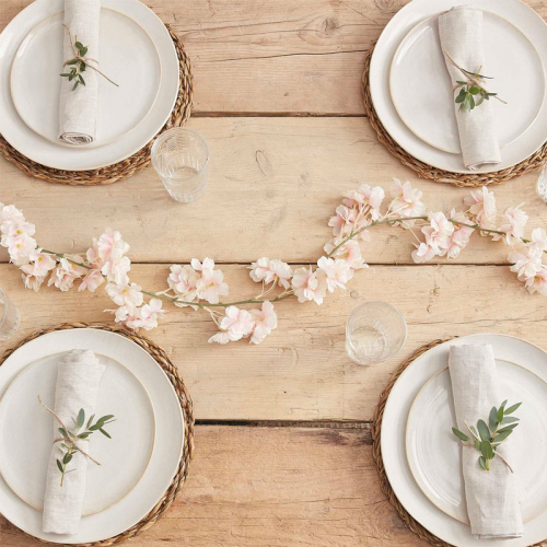 En snygg blomstergirlang med ljusrosa blommor.  Dessa blommor är tillverkade i plast och har ett fint realistiskt utseende. Girlangen är en vacker dekoration att hänga upp i taket, på väggen eller låta den ligga mitt på bordet som en del i bordsdukningen.