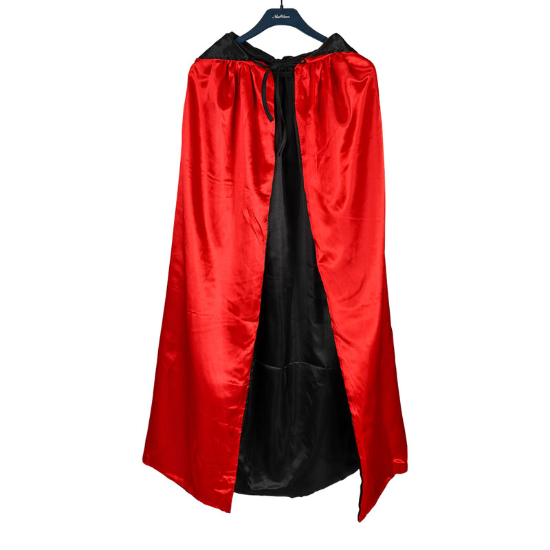 Lyft din look med denna lyxiga vändbara cape i satin! Med en längd på 130 cm och en elegant luva kombinerar den stil och funktion på ett unikt sätt. Cape’n skimrar i både röd och svart, och du kan enkelt vända den för att matcha din outfit eller stämning – perfekt för fester, Halloween, cosplay eller dramatiska kvällsevenemang.