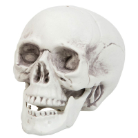 Dödskalle av hårdplast i naturlig storlek. Rörlig underkäke.