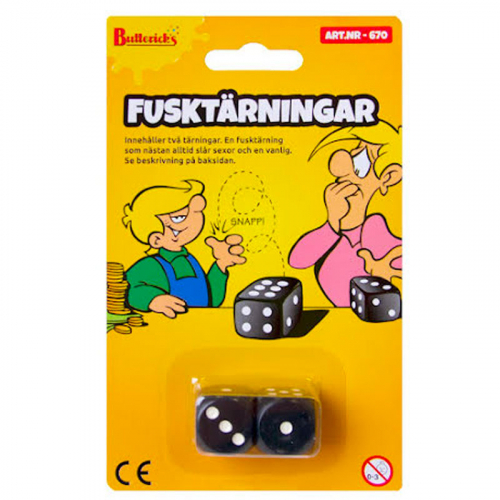 Innehåller: 2st fusktärningar där ena tärningen alltid slår en 1:a och den andre alltid slår en 6:a.