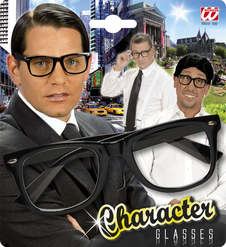 Glasögon med svarta bågar och transparent glas. perfekt för dig som ska klä ut dig till en viss karaktär eller liknande.