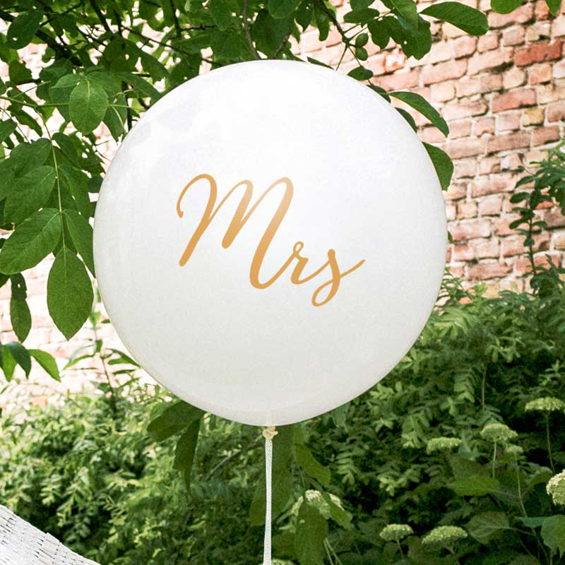 En vacker ballong med texten Mr i ett fint kursivt typsnitt i guld.