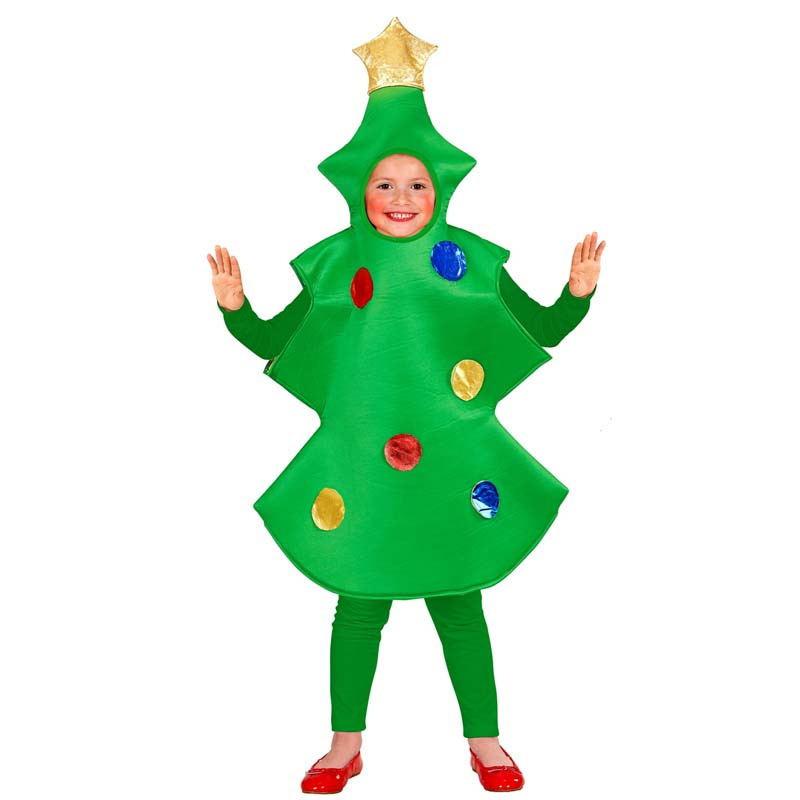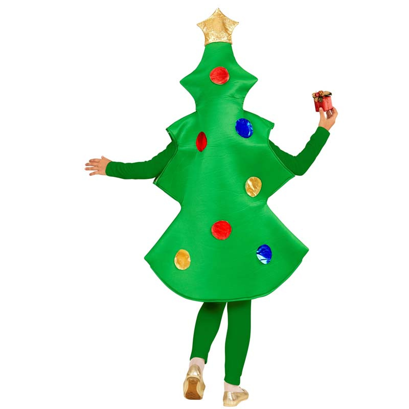 Dräkt föreställande en julgran med julgranskulor i blått, guld och rött s...