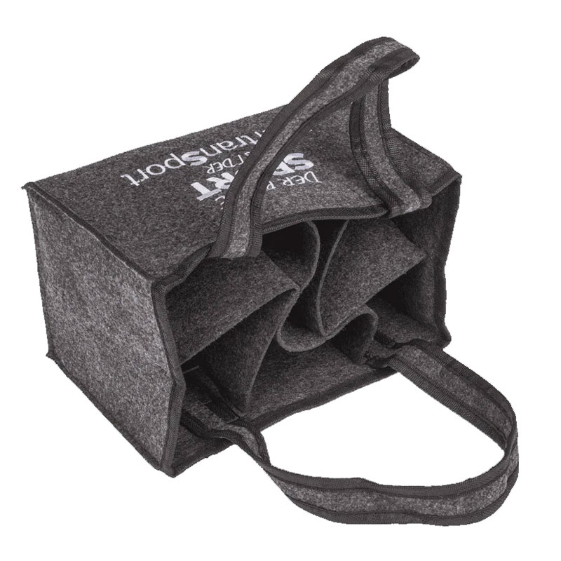 Den robusta designen med smarta fack gör att flaskorna står stadigt och inte slår i varandra. Det mjuka filtmaterialet ger inte bara en modern och minimalistisk look, utan skyddar även innehållet under transport.