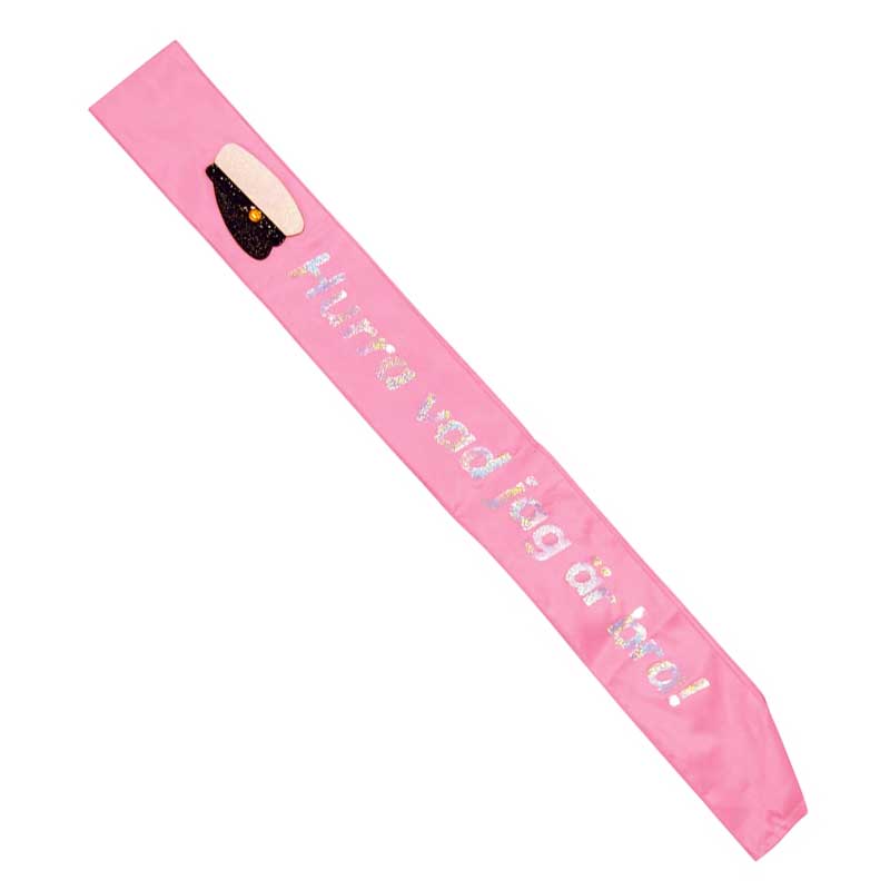 Detta ordensband är i ett rosa sidenliknande tyg och bär texten "Hurra vad jag är bra!". Ordensbandet bär även motiv en klassisk studentmössa. En fin present att ge bort i studentpresent!