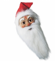 Tomtemask tillverkad av styv plast som håller formen med röd luva som sitter fastsydd i ...