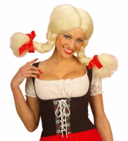 En vuxen peruk med flätor och röda rosetter, till oktoberfesten.