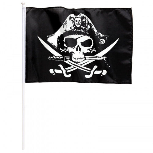 Flaggan består av en stadig vit plastpinne samt en flagga i tyg. En perfekt accessoar och dekoration till barnkalaset eller maskeraden med temat pirater.
