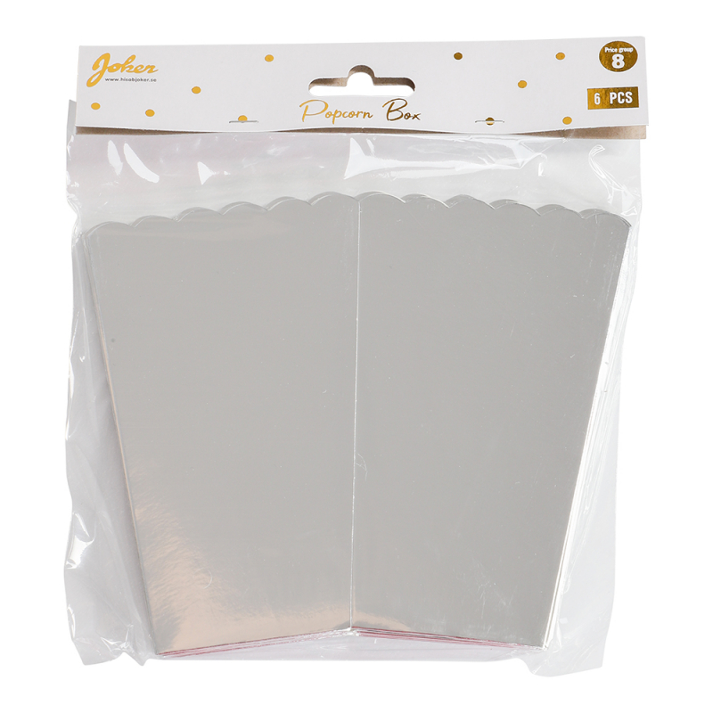 Popcornbägare Silver 6-pack - Popcornbox i Papp till Fest, Nyår & Mello