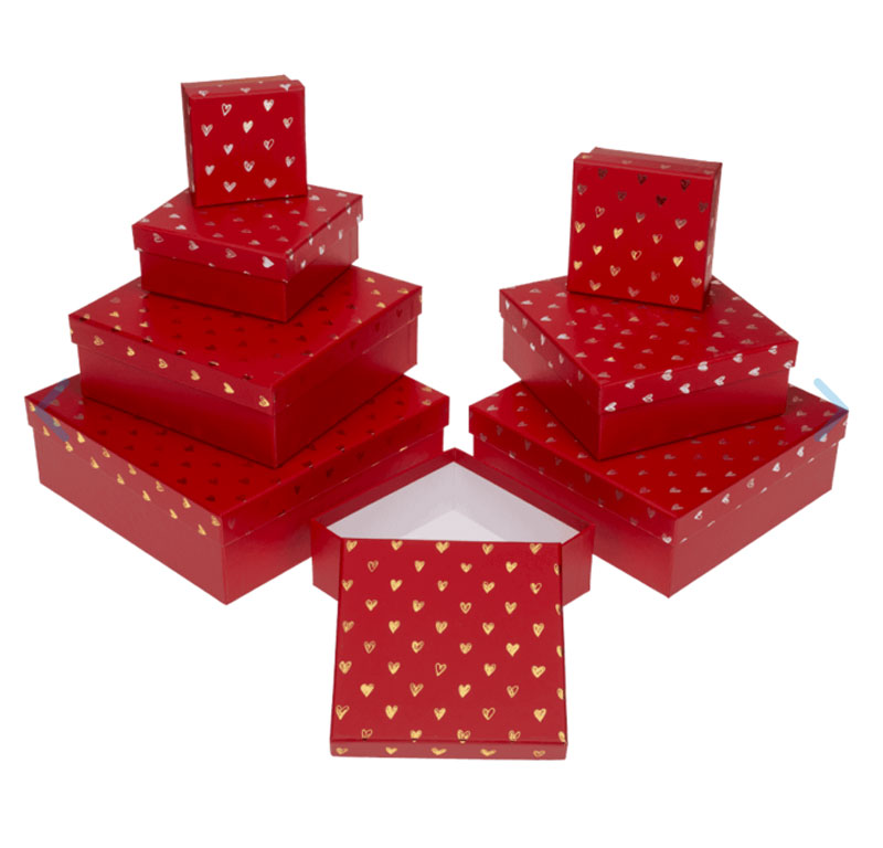 Presentboxar – Röda med Hjärtan (8-pack) – Eleganta Gåvoboxar i Flera Storlekar