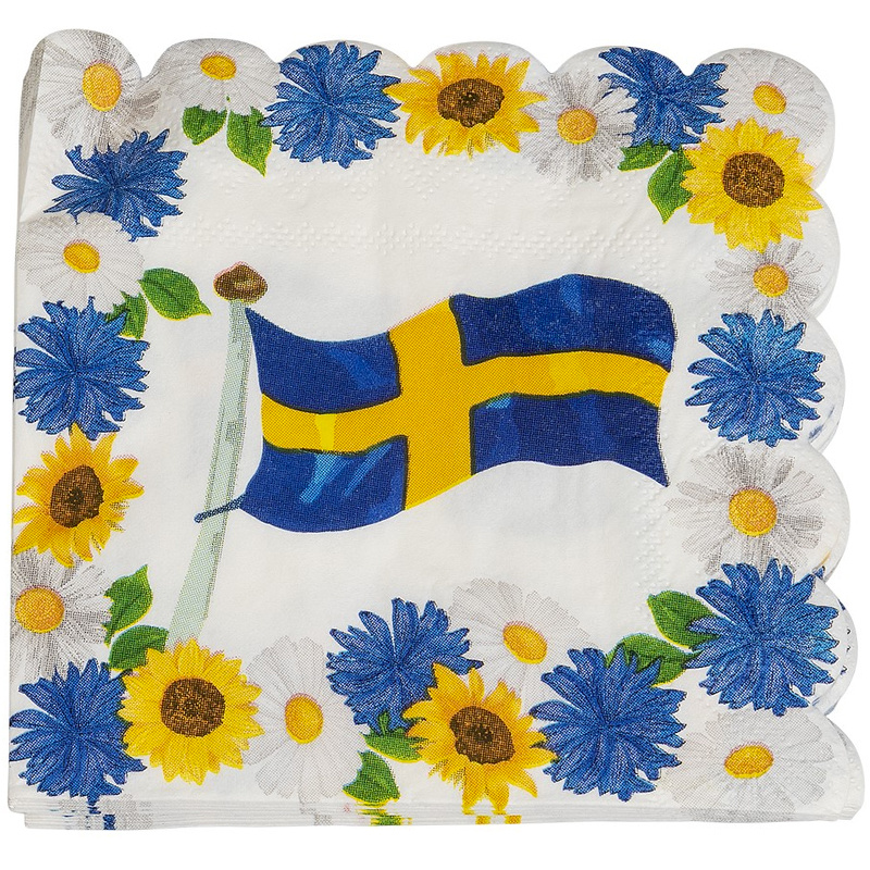 Duka upp för sommar med dessa vackra tallrikar med motiv av den svenska flaggan och blommor i...