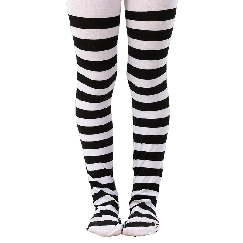Stay ups strumpor svart och vitrandiga, passar till många olika teman som t.ex. pirat eller något annat roligt tema.