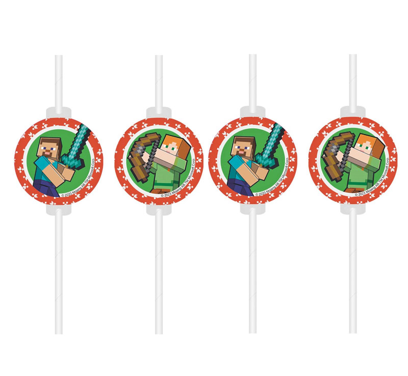 Gör feststunden ännu roligare med våra Minecraft-sugrör i 4-pack! Perfekta för barnkalas, familjemys eller temafester, dessa sugrör är dekorerade med populära Minecraft-motiv som kommer att få alla små äventyrare att le.