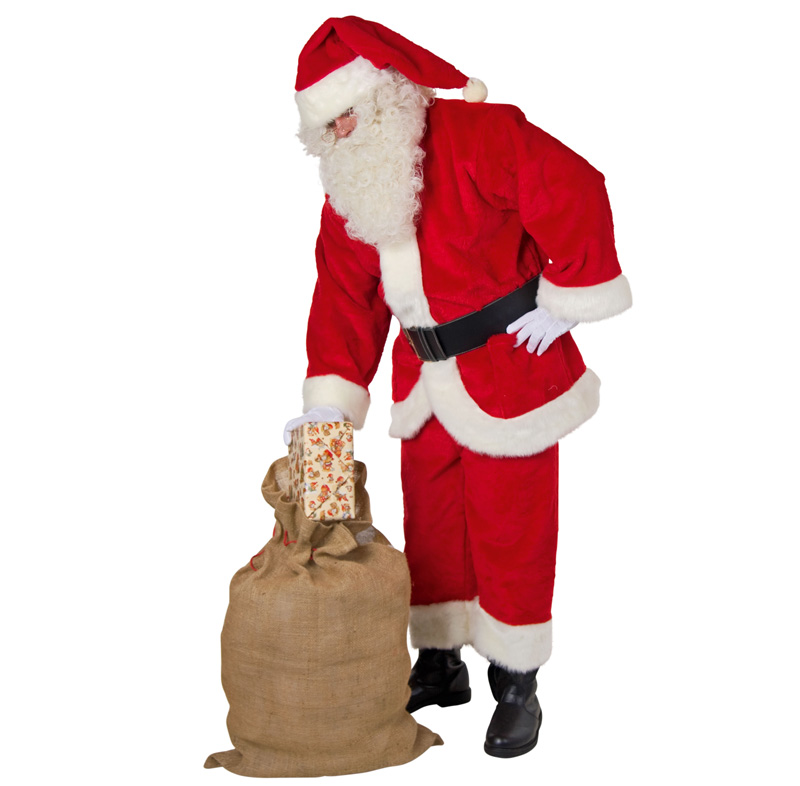 En tomtedress i hög kvalitet tillverkad i Tyskland, dressen är röd med vita muffar och kanter i en tjock mjuk plysch.